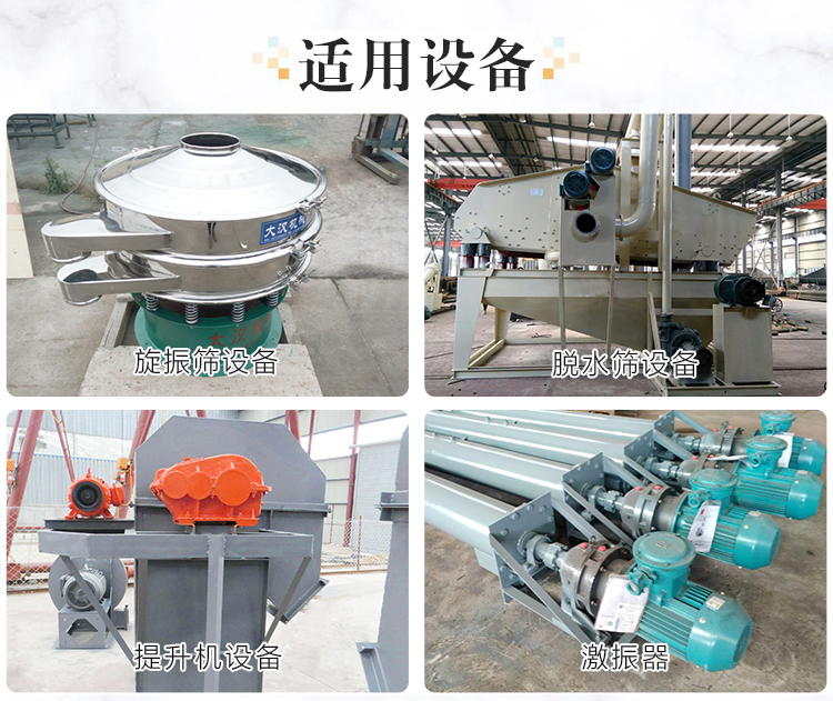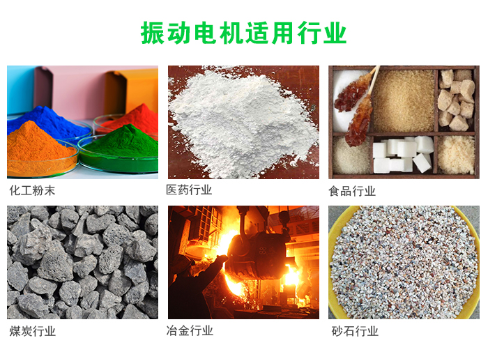 廣泛的應用在水電建設、火力發電、建筑、建材、化工、采礦、煤炭、冶金、輕工等工業部門。振動電機除了可以應用與一般振動機械外,還可以組合多種振動形式。如:平旋型,渦旋型,搖動振動型,組合直線型,組合長橢圓型,復合雙頻型,復合雙幅型等。由這些振動形式可以產一些過去所沒有的新型振動機械。